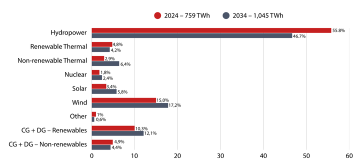 The advance of renewable sources in Brazil is significant: in 2009, wind, solar and biomass energy represented only 7.4% of installed capacity, according to the Ten-Year Energy Plan ^1. In 2024, they will reach 28.7%, with projections of 35.1% by 2034 ^2.